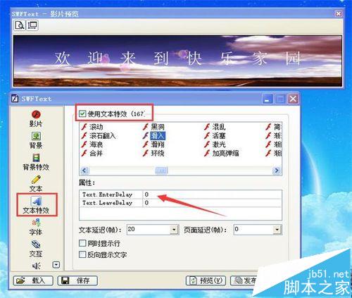 6、文本特效:直接設置文字特效,比如:滑入、激光、海浪等特效,如圖所示