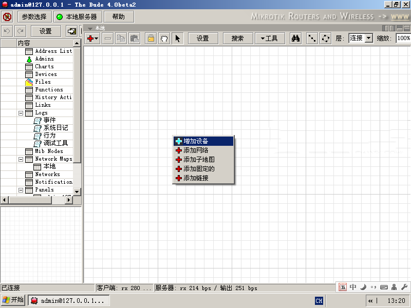The Dude網絡監控器Net Maps中的操作:1、網絡圖標定義為:右鍵--“添加網絡”;