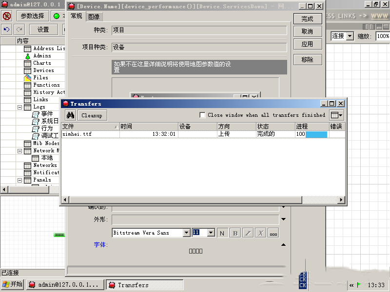 4、如要在地圖上顯示cpu、memery、網絡流量等信息要求設置支持snmp協議,其中linux主機可安裝snmp軟件,windows主機要添加snmp協議支持,操作為:控制面板--添加程序--windows組件--管理和監視工具--簡單網絡管理協議,既可。ros要打開snmp支持,定義dude服務器地址,在winbox中可操作。