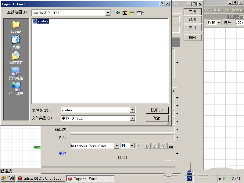 4.在"服務器:"框輸入127.0.0.1 ,其它默認,然后點擊"連接":
