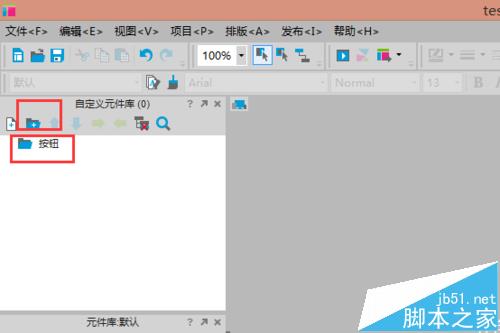 4、添加元件分組。刪除默認(rèn)的“新元件1”頁(yè)面,添加一個(gè)文件夾,命名為你的分組名。這里以“按鈕”為例。