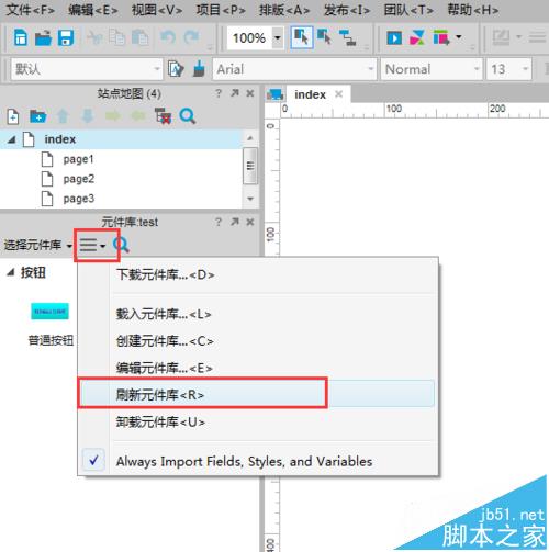 2、認(rèn)識(shí)元件編輯頁(yè)面。元件編輯頁(yè)面和我們使用Axure做原型時(shí)是一樣的,你依然可以加入其它的元件庫(kù)并運(yùn)用到你索要編輯的元件上。