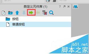 7、預(yù)覽效果。制作完成元件庫(kù),保存后回到我們最初打開的Axure中,在元件面板綠色搜索按鈕左邊點(diǎn)擊小三角,選擇“刷新元件庫(kù)”,元件庫(kù)面板就會(huì)出現(xiàn)你剛制作好的元件了,拖一個(gè)在工作區(qū)試一下吧!