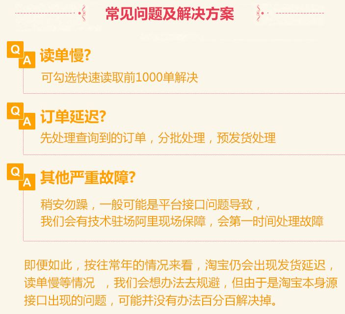 三、結合往年雙十一情況,整理匯總常見問題及解決方案如下: