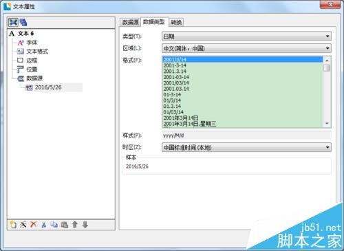6、切換至數據類型選項卡,類型選擇“日期”,根據實際情況選擇適當的日期格式。