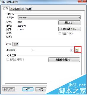 3、在打印對話框中單擊副本數量設置后的按鈕,彈出“打印數量選項”對話框,在此對話框的右側,勾選“在打印對話框中指定數量”,這樣您就可以在BarTender 2016自定義修改打印數量了。