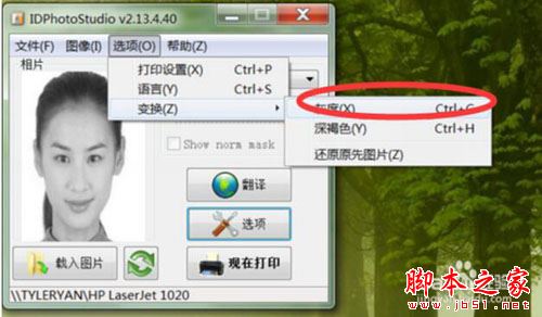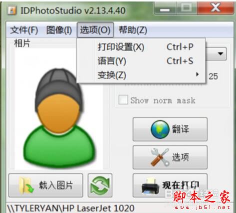 打開IDPhotoStudio.exe,因為這是中文的,所以我們就不用去設置軟件的語言,打開就是中文的,如果想切換其他語言可以這樣。選項->語言 就可以設置你目標的語言了。或者你可以直接點擊翻譯按鈕也可以改變語言