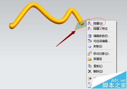 8、點擊平面和草圖成橘黃色狀態(tài),然后右擊右鍵,選擇隱藏,將平面和草圖圖形進(jìn)行隱藏