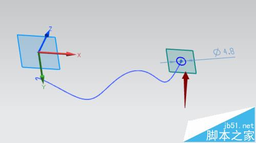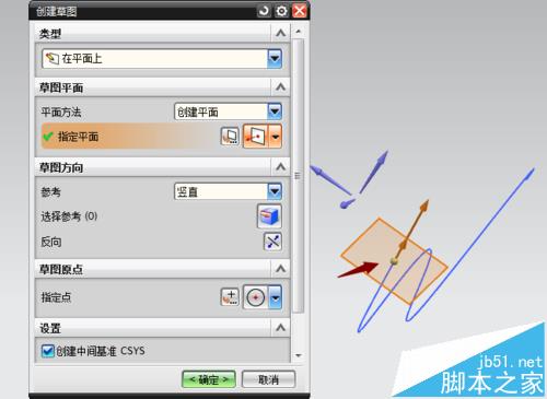 2、以曲線的一端點建立平面,端點與平面呈垂直狀態(tài)。通過點的方式創(chuàng)建平面。