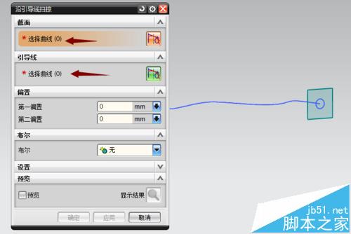 6、截面選擇圓形,引導(dǎo)線選擇曲線,選中狀態(tài)是前面都標(biāo)記了對號,不需要設(shè)置偏置狀態(tài)。