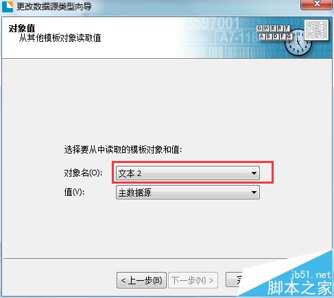 2、雙擊條碼,將數據源類型修改為“對象值”。單擊下一步。
