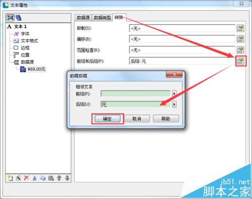 5、如果您想像下圖這樣,在單價數據后添加后綴“元”,您需要在“轉換”選項卡進行設置,如步驟6,而不能直接在文本數據源輸入。