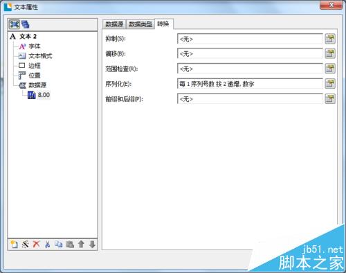 1、首先,在BarTender 2016中,創建文本數據源,將表達“數量”的文本數據源的數據類型設置為“數字”。