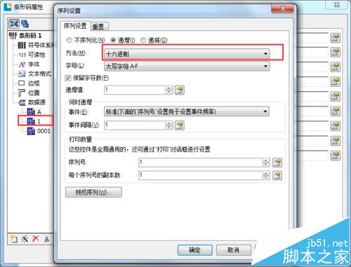 2、“1”實(shí)現(xiàn)1到F的循環(huán)。也是數(shù)語十六制制循環(huán)。具體設(shè)置請(qǐng)參照下圖中的設(shè)置。同樣這里可根據(jù)要求設(shè)置字母大小寫,及序列號(hào)的副本、來源。