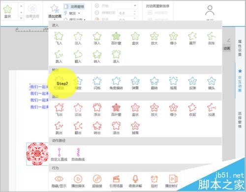 2、選擇相應的進入動畫、給動畫做個特效以及退出動畫