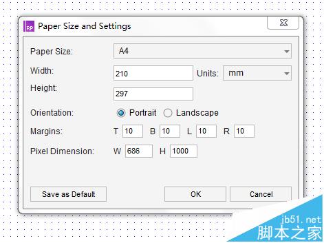 2、打開”紙張尺寸和設置“窗口,如下圖所示: