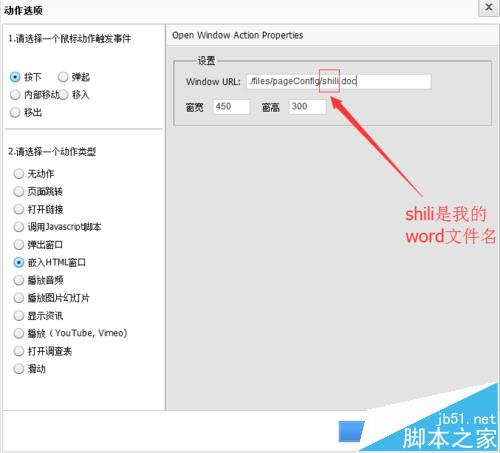 3、輸入URL:./files/pageConfig/shili.doc,shili.doc就是你的word文件名。然后保存退出