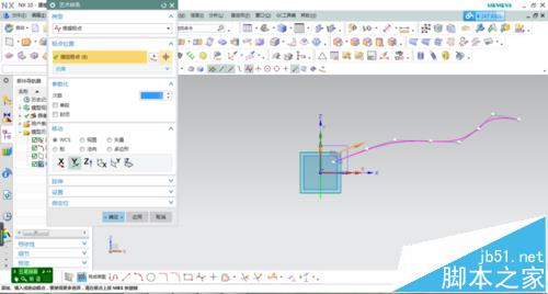 4、將固定線串調整為截面,則掃掠特征移動到截面圓曲線對齊。打開形狀控制下拉框,移動截面線和引導線樞軸點位置,可以改變掃掠特征的位置和形狀。如圖所示
