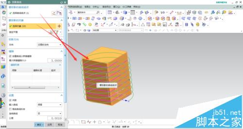 3、選擇插入/派生曲線/投影,將螺旋線投影到長方體上,完成后隱藏實體和螺旋線。