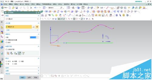 1、先在草圖模塊繪制一個平面投影截面曲線,然后在垂直坐標平面用樣條曲線繪制一條成型線。