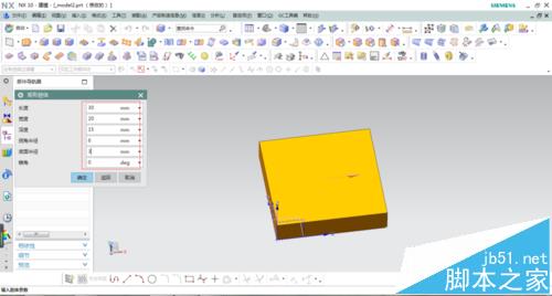 1、先使用長方體命令創(chuàng)建一個實體模型。點擊插入/設(shè)計特征/腔體,或者單擊工具欄中的腔體命令,選擇腔體形狀為矩形。