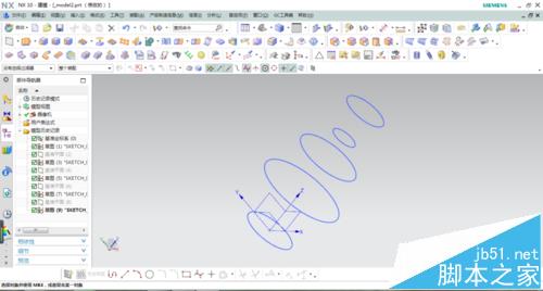 1、首先點擊插入/曲線/基本曲線,繪制如圖所示的幾個空間圓,注意圓心位置變化,具體尺寸可按圖中比例大致設置。