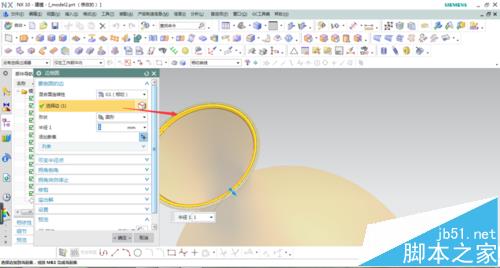 2、使用通過曲線組命令生成花瓶實體特征,如圖所示,對瓶底進行倒圓角處理。
