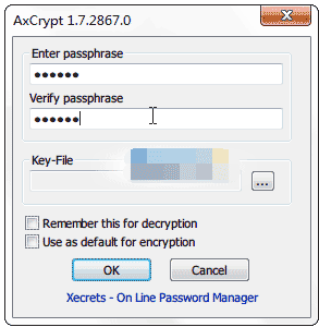 AxCrypt 除了可以對文件使用最普通的密碼進行加密以外,還可以設置一個密鑰文件。以后再使用該加密文件的時候不僅需要密碼,而且還需要該密鑰文件。當然,如果你使用該方式加密的話,一定注意要保管好你的密鑰文件,否則如果丟失,被加密的文件就永遠無法打開了。