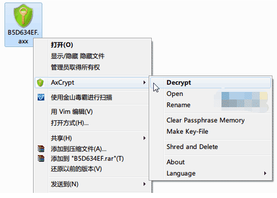 另外,補充一句,有部分偽加密工具的加密效果是僅在本機生效的,復制到別人的機器上就能正常使用了。而使用 AxCrypt 加密后的文件,無論放在網盤、U盤或是別人的電腦上還是使用 Dropbox、金山快盤等同步都依然是加密的,都需要解密后才能使用。