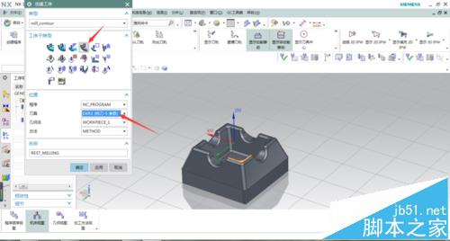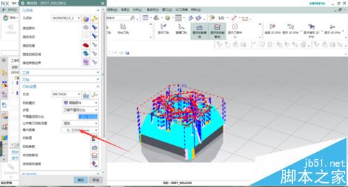 4、點擊確定完成后,接著選擇剩余銑,各參數如圖所示,指定每刀加工深度的移動步距,生成刀路,仿真加工效果如圖。