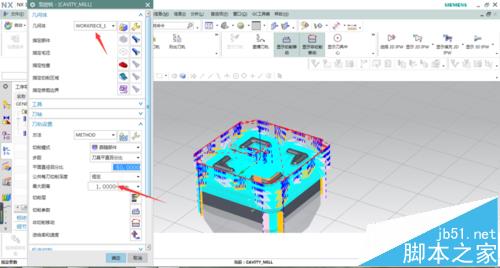 2、接著創建工件坐標系、部件幾何體和毛坯幾何體。插入操作,選擇型腔銑,各參數如圖所示