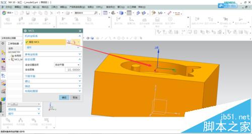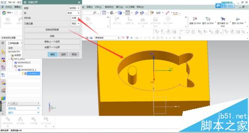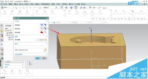 2、建立工件坐標系,選擇為平面中心位置。創建部件毛坯幾何體。操作如圖