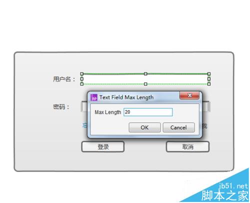 4、為了限制用戶名、密碼輸入,將用戶名長度限制為20,密碼長度也為20,并且顯示成密碼格式輸入,如下圖所示: