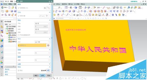 5、這些文字線條無法修剪,第一種解決辦法點擊插入/派生曲線/投影,選取線條投影到平面上時行修剪,如圖。第二種解決辦法點擊插入/派生曲線/抽取,選擇封閉的線條抽取出來。再次進行拉伸成功,效果如圖