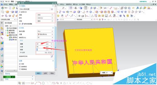 1、隨意繪制一個長方體,點擊插入/曲線/文本,生成文本對話框,選擇在面上生成文字,選取一條邊線作為參考邊,具體操作如圖所示。
