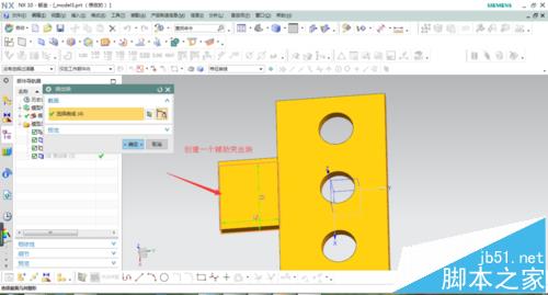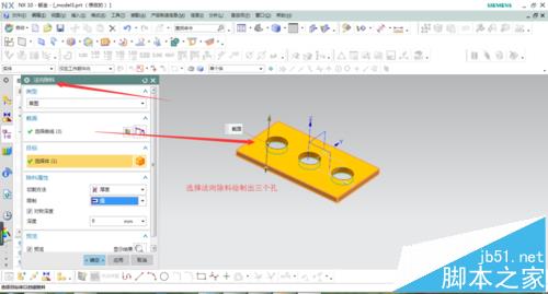 1、首先進入鈑金模塊,選擇突出塊命令,繪制草圖,給定厚度,創建如圖所示的塊。然后選擇法向除料命令,繪制鎖緊螺釘需要的圓孔,如圖所示,也可直接用拉伸命令進行拉伸求差。