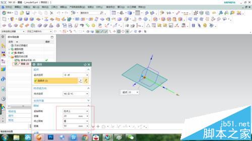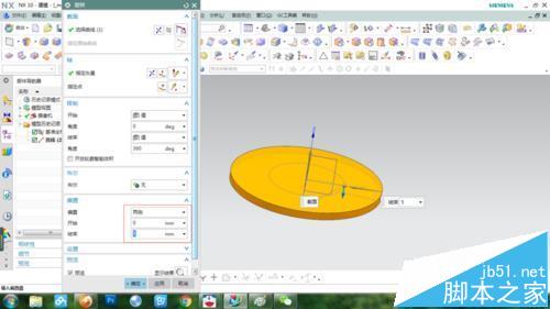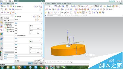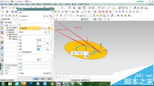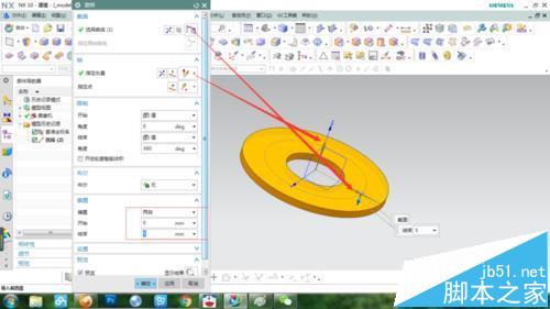 4、我們要生成圓環(huán),先取消現(xiàn)在的旋轉特征,返回修改直線,將起始位置改為20,如圖所示。重新選擇旋轉特征命令,選擇直線為截面線,縱向軸為旋轉軸,給定偏置值,則產(chǎn)生如圖所示的圓環(huán)。