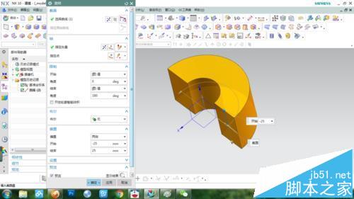 5、將旋轉角度改180度,則生成一個半圓環(huán)壓套,如圖