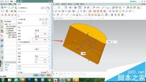 3、當我們調整旋轉角度為180度時,則實體成為一個半圓柱體。這里可以在0到360度之間任意生成。