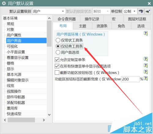 4、在“用戶界面環境”中選擇“僅經典工具條”選項;選好后單擊確定,彈出的對話框繼續單擊確定