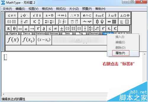 3、對已經分好類的可以不用進行自定義,對于后面兩個標簽我們將常用公式保存的地方一般是在“標簽8”和“標簽9”中,右鍵點擊“標簽8”,選擇“屬性”。