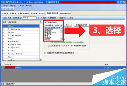 6、從文檔導入,點擊批量導入: 事先整理好的禁售詞放在EXCEL或TXT文檔中,可以批量導入(注意文檔中只能有禁售詞一列,否則會出現亂碼)