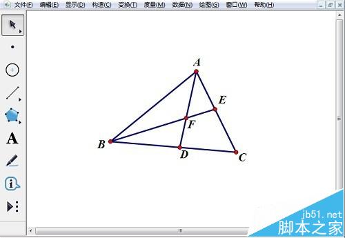 6、執行“文件”—“保存”命令即可。拖動三角形ABC的頂點,改變三角形的形狀,點F總是三角形ABC的內心。
