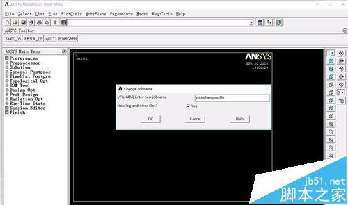 2、定義文件名Utility Menu>File>Change Jobname,彈出對話框后,輸入file-1,點擊YES,然后點擊OK,如下圖所示。定義分析標題 Utility Menu>File>Change Title,彈出對話框,我們可以輸入example,點擊OK即可完成定義分析標題。