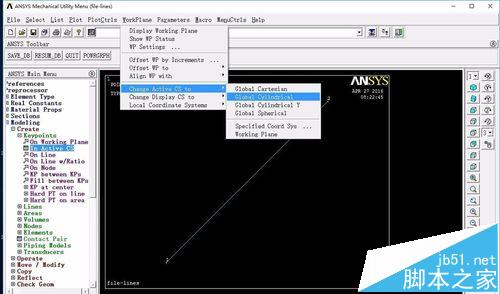 3、創建圓弧,更改為柱坐標系,方法如下圖所示。創建點3,然后再在Main Menu>Preprocessor>modleing>create>areas>lines>arcs>by end kps&rad,選取點1,2點擊OK選擇下方的點3,輸入半徑大小即可完成。