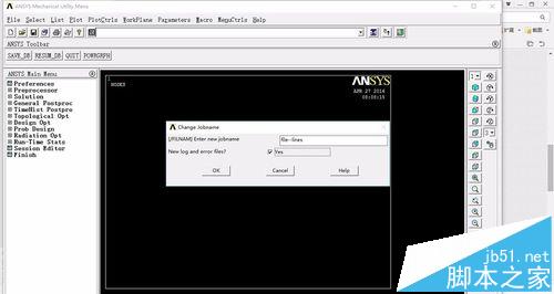 2、依次點擊Utility Menu>File>Change Jobname,彈出對話框后,輸入file-lines,點擊YES,然后點擊OK,如下圖所示。(命令行方式:/FILENAME)