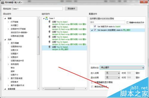 17、將最后一個當前元件設置為state6后,將其動態面板狀態選擇為停止,點擊確定。就可以在主頁頁面發布預覽效果啦~