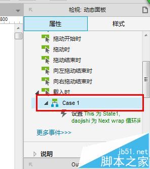 9、回到主頁(index)頁面點擊選中動態面板后在右邊的屬性欄雙擊交互處的載入時