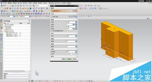 8、創(chuàng)建矩形腔體,插入---設(shè)計(jì)特征—腔體,之后選擇矩形腔體。選擇面,以側(cè)面為水平參考,按如下參數(shù)設(shè)置 定位 19mm 75mm 之后完成