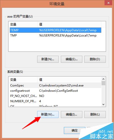 4、在環(huán)境變量界面單擊系統(tǒng)變量下的新建按鈕,如圖所示: